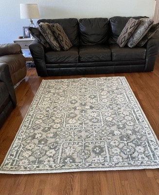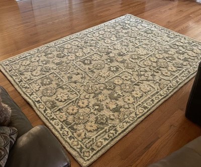 Add comfort to your indoor space with this elegantly stylish Handtufted Textural Floral Area Rug from Threshold™. The rectangular hand-tufted area rug showcases a sage green floral pattern on a textural backdrop for a charming look that blends well with any decor aesthetic. Featuring a wool construction for soft underfoot comfort, the medium-pile area rug is ideal for use in a variety of areas within your home.