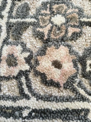 I really like this hand tufted rug. It’s thick and has a lot of dimension. The grayish sage color and pink go really well together along with the beige. I also like that the rug is backed. Overall it seems like a good quality rug.