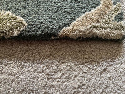 Beautiful design and color, matching the product photo well. Feels high quality at a reasonable price. It may be a little small for my space, but it was priced well for a hand tufted wool rug. My cats (and dog) like sitting and rolling on it but luckily it hasn’t attracted as much scratching from my cats as some rugs. It is holding up better than a “hand looped” rug I also purchased that my cats quickly pulled loops free making that one look worn in a matter of days. I took a photo with natural light only, and another with lights on in the room(with cat), to help see color changes with light if needed. I measured the rug exactly 5’ x 7’ as described.