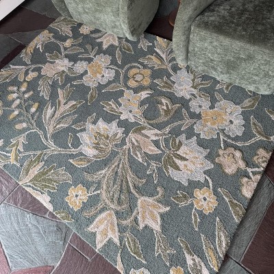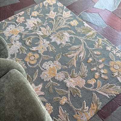 Give your flooring a sophisticated update with this Floral Handtufted Area Rug from Threshold™. This rectangular hand-tufted area rug showcases a floral pattern in green hues for a charming look that blends well with any decor aesthetic. Featuring a wool construction for soft underfoot comfort, the rug also has a low-pile construction, making it perfect for high-traffic areas like your living room or entryway.