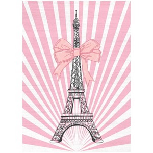 - WHIMSICAL STYLE: This printed kids’ rug features the Eiffel Tower wrapped in a pink bow, bringing elegance with a touch of whimsy to any kids bedroom or playroom.