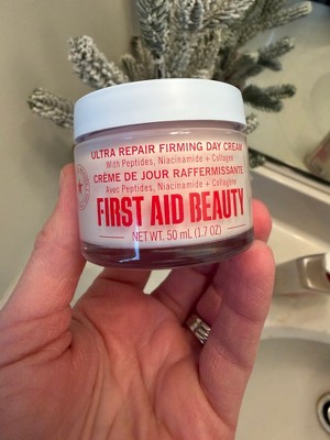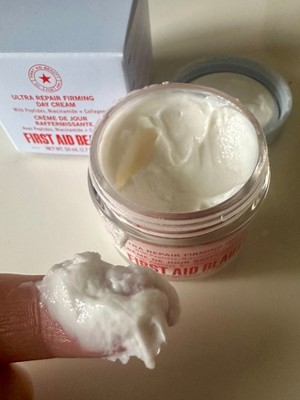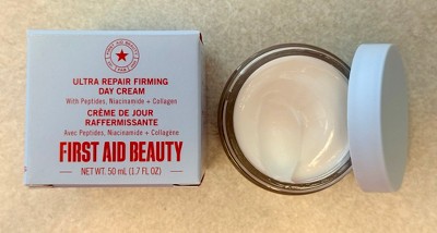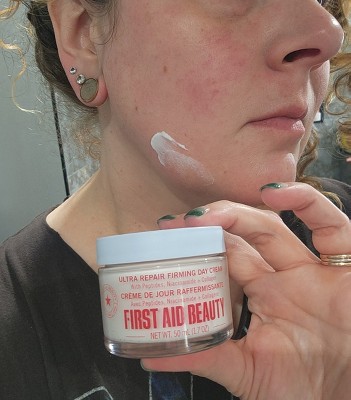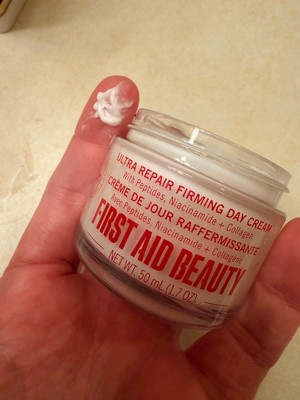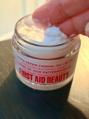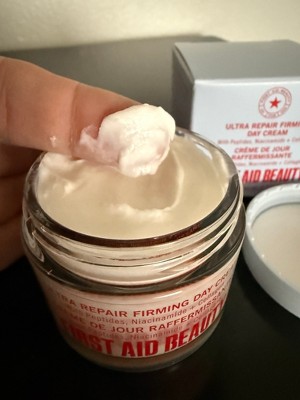 [I received this product in exchange for my honest review] I've been using first aid beauty ultra repair firming day cream and I'm impressed. It feels super lightweight but still gives my skin plenty of moisture without feeling greasy. My skin looks smoother and a bit more lifted, and it wears well under makeup. It's gentle, soothing, and perfect for every day use- especially if your skin needs hydration with an extra firming boost.