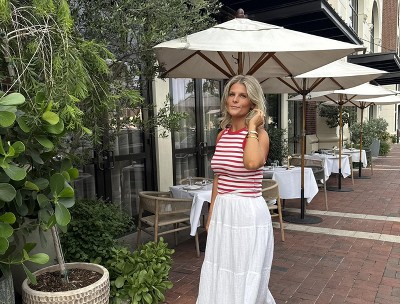 Love this skirt! It’s bright white with lightweight fabric. The style is timeless.