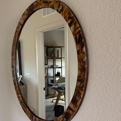Love the uniqueness of this mirror. I didn’t love the light brown trim, as it felt unfinished to me so I took a dark brown marker to all the exposed edges and I think it looks so much better now.