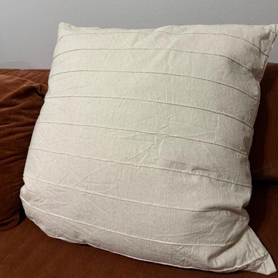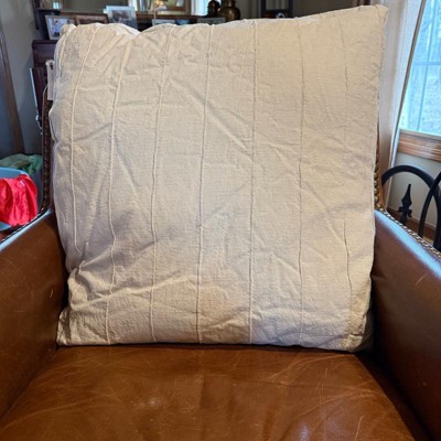 Add a stylish, textured touch to your bedding or favorite seating spot with this Stitch-Stripe Euro Throw Pillow Cover from Hearth & Hand™ with Magnolia. The cotton-linen square pillow cover has a jacquard woven surface in tan with a stitched stripe pattern, and it sports a hidden zipper closure for easy tucking in and removal of the pillow insert. Plus, the machine-washable construction makes cleaning a breeze.
