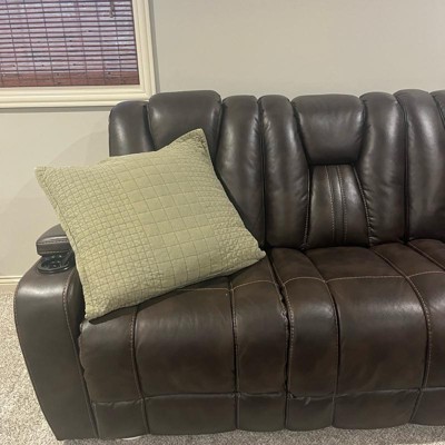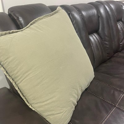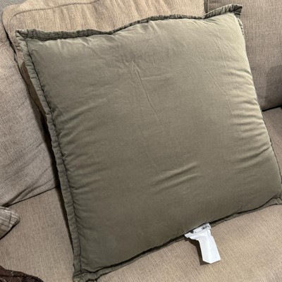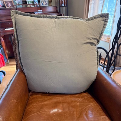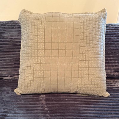This is a 26 x 26 quilt throw pillow in a khaki green color. I love the detail on the front of the pillow the "patchwork" is very good quality. This is an indoor use throw pillow and you can see from my pictures. It takes up the entire back of my chair. Hearth and Hand Do an amazing job on this. such a great pillow.