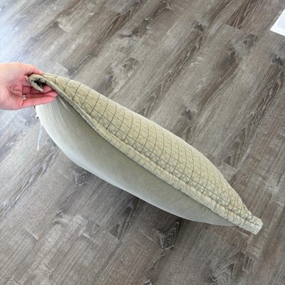 I really love the olive green color and quilted material of this pillow. I am also very impressed with the size, it’s extra large and just the size I was looking for, however, it needs triple the filling. As seen in my photos to the side, it’s too flat and is not plump and full like I had hoped. For the price, it’s not worth it