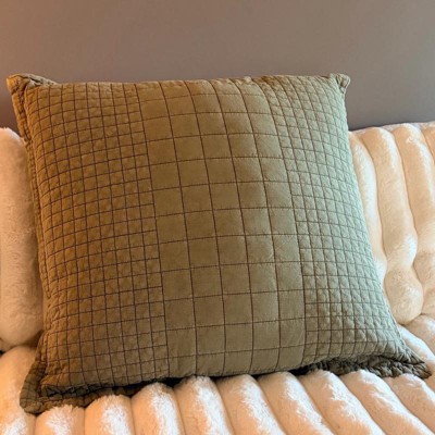 26"x26" Quilt Euro Square Throw Pillow Green - Hearth & Hand™ with Magnolia