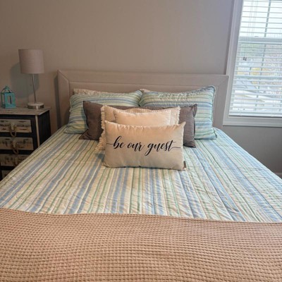 I purchased this oblong shaped brown colored throw pillow for my guest bedroom made by hearth and hand with magnolia. This throw pillow helped me to incorporate the throw blanket on the bottom of my guest bed and also brought a darker color to the top pillows. I love that it unzips for easy cleaning if needed as well!