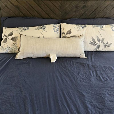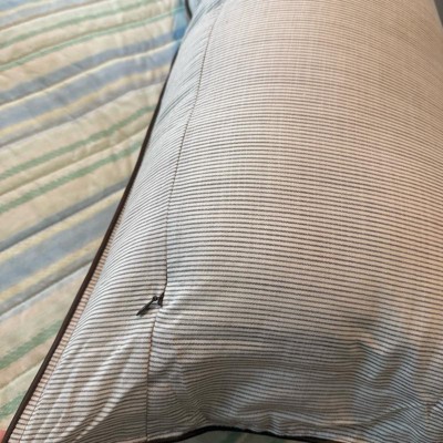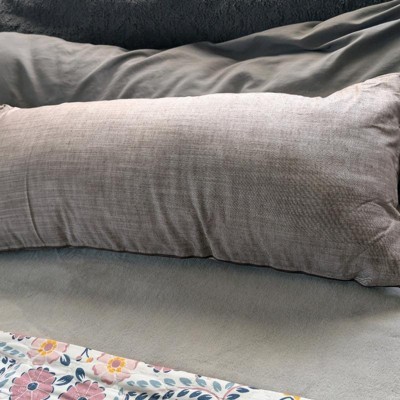 Looking at the photo online, it looks like a body pillow but I would say it's half as long. It's still very nice and plump and I am always looking to add more comfort into my bedroom so this works perfectly for our family. It does have two patterns and I like having the option to flip it over and get a different color added into our room. One side is gray and the other side is white.