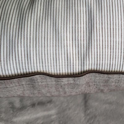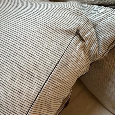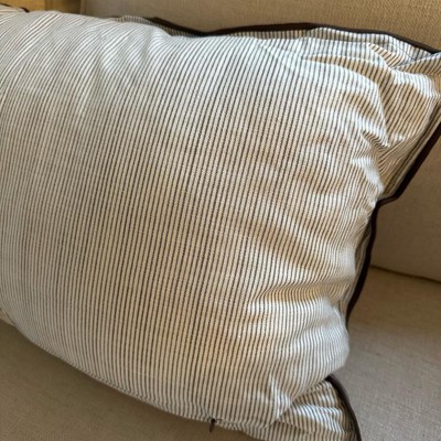 The 14 inch by 36 inch oblong throw pillow in brown by Hearth and Hand with Magnolia is a beautiful accent pillow. My favorite part about the pillow is the fact that it is reversible. One side is sort of chocolate brown in color and on the back side of the pillow it has a chocolate and ivory stripe. I love that it has a zipper too for easy cleaning.