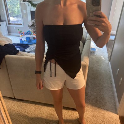 Asymmetrical tube top from Wild Fable™ in a slim fit. Features front cutout with cinches and tie detailing. Tailored of cotton-recycled polyester fabric with spandex for comfortable wear.