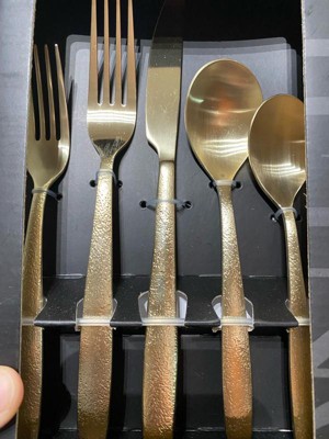[This review was collected as part of a promotion.] This flatware set is gorgeous! I love the champagne gold color, very luxe. I also love that it is a 20 piece set. They are easy to hold and light weight. Very easy to clean and have not tarnished. They seem to be very durable so far! Highly recommend!