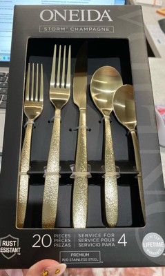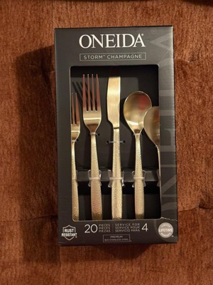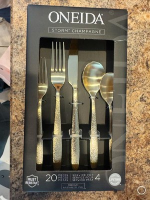 Oneida 20pc Storm Flatware Set PVD Champagne