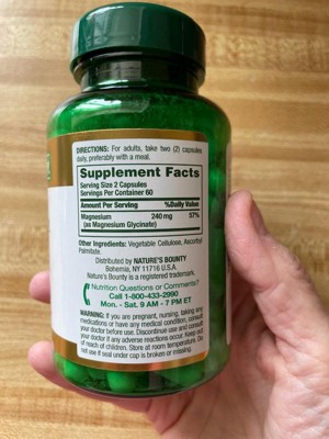 Nature's Bounty Magnesium Glycinate 240mg High Absorption Capsules - 60ct: Dietary Supplement, 60 Capsules