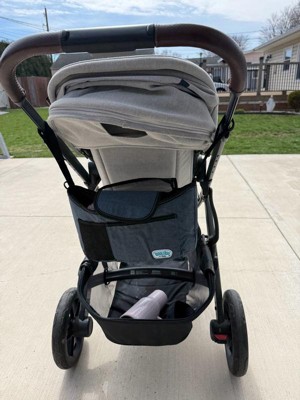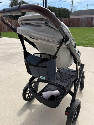 [This review was collected as part of a promotion.] Compact, easy to use stroller organizer with good storage and a stylish denim look. Great for everyday use and easy to store away when not using.