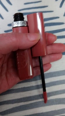 [This review was collected as part of a promotion.] Loreal Lacque Resistance Liquid Lipstick in Shade 635 Worth It Medium glides on with precision with the doe foot applicator. It has a silky smooth texture and does not feel sticky. It dries down quickly for a lasting finish.