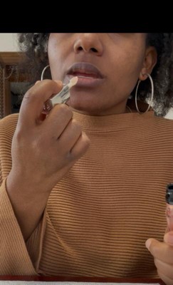 [This review was collected as part of a promotion.] It Smells Sooooo Good ! She’s A Spicy One Too Lol . But There’s No Pigmentation Just Clear Gloss When It’s Applied . Very Comfortable And Visibly Plumper Lips.