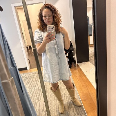 Love these boots! They’re true to size and very comfortable, thanks to the memory foam insole. The calf fit is perfect, not too wide, so they don’t look bulky on my legs. The tan color is beautiful and goes great with dresses or jeans. Such a great find, especially for the price!