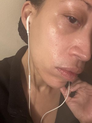 This doesn’t leave a cast for darker skin tones! So I feel comfortable applying this in public without the concern of looking ghostly. The finish is very dewy and I think it looks very pretty on my skin. I would recommend this product for travel! The only con is that I got caught in the rain with this product on and it burned my eyes really badly. So don’t wear this product if you’ll be getting wet.