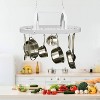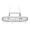 Update your kitchen in style with this industrial look two light 13.5" pot rack fixture featuring a White finish. Make your pots and utensils easily accessible in a stylish way with this traditional design, as well as extra lighting for your every day tasks. Comes with 2 chains (each measures 36"), 2 feet of cord (from top of fixture) and 10 hooks. Fixture requires two 60-Watt Type A standard medium base incandescent bulbs (not included).