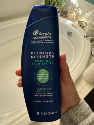 Head & Shoulders Clinical Strength Cooling Itch Relief Shampoo, brought to you by the #1 Dermatologist Recommended Brand, delivers our Maximum Dandruff Protection. Powered by 1% selenium sulfide, this unique formula starts working 2X faster to fight the main cause of dandruff.* Head & Shoulders Clinical Strength Cooling Itch Relief Shampoo is Clinically proven to relieve stubborn dandruff itch. Still gentle on scalp, you can use this formula every wash, and break the cycle of stubborn dandruff.** Now formulated with a new, great scent for enjoying every wash.*kills more Malassezia at 3 washes vs. 6 washes with ordinary anti-dandruff shampoo**visible flakes, with regular use