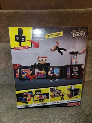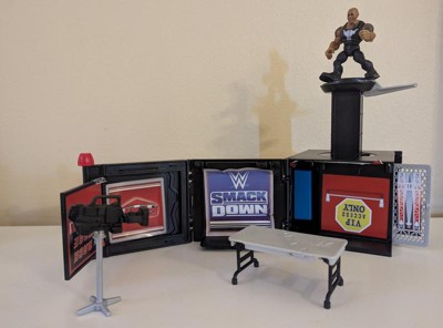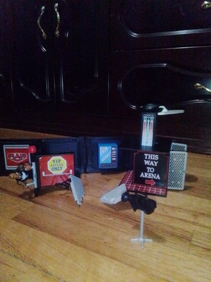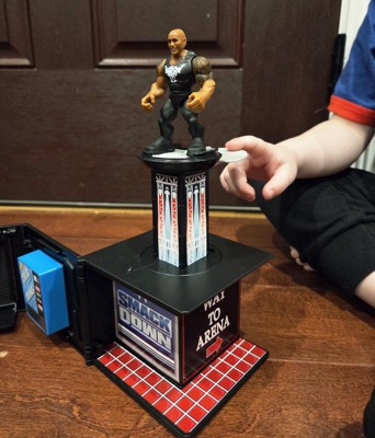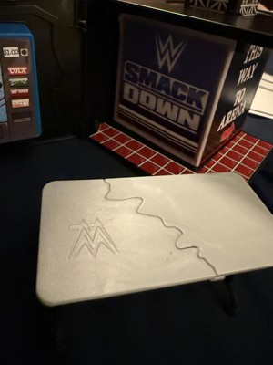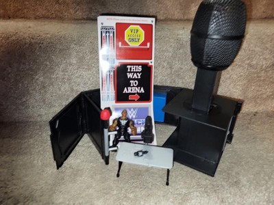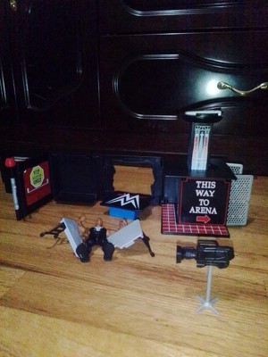 [This review was collected as part of a promotion.] My kids love this toy. I put the stickers on so that they would be put in the correct areas, then tried it out. It was awesome, you could have the wrestlers go through some of the walls of different areas of the backstage of the arena. Then when you take the top of the microphone off you can place your wrestler up there and then have them fly through the air to attack another wrestler. The table is made to break apart. It is so realistic to the real WWE wrestling.