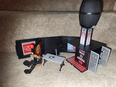 [This review was collected as part of a promotion.] This playset is awesome. We love the versatility and it can easily capture the imagination of children. As a microphone, the kids spent hours practicing as annoucers. When it was transformed into the arena entrance area, it the fun continued. The kids were coming up with all sorts of story lines involving the punch out walls (cool feature by the way) and the launch pad on top of the microphone. I like the little storage area as well. It fits the includes accessories nicely.