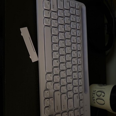 Pretty lilac color, silent keys, and sits pretty one my desk with the matching Logitech wireless mouse. My two issues: the stall when you do not use the keyboard for more than 3 minutes. It takes time for the keyboard to connect back; the kickstands are flimsy and do not stay in place causing the keyboard to fall down flat.