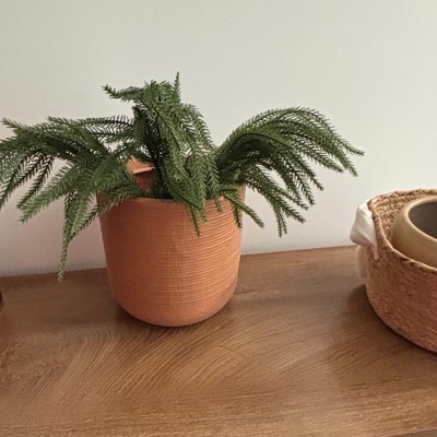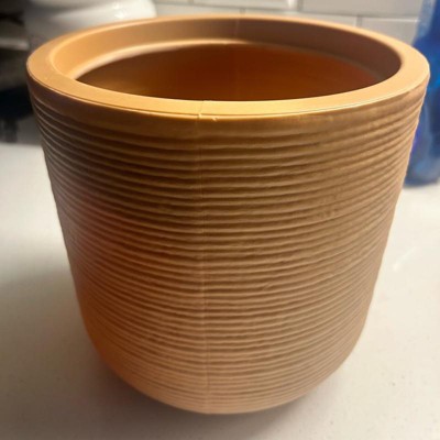This is an amazing fluted terra-cotta orange planter. This amazing planter is well-made and really sets the tone for a unique vibe. This planner can be used indoor or outdoor, which is great. I love the ribbed flutted design, which really makes it different than other planners. It’s large enough for a fake plant but also perfect for real ones.
