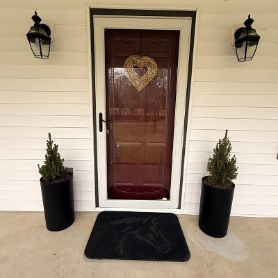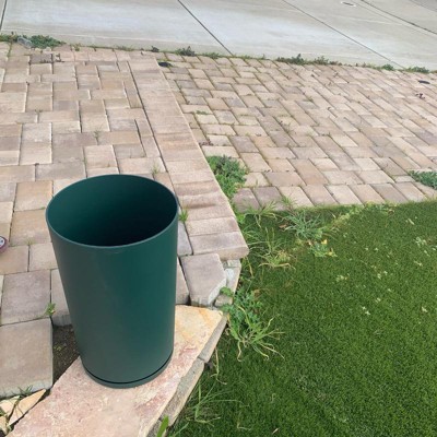 This recycled resin planter checks all boxes. Can use it anywhere. Has a fitted tray so no worry about matching one and minimalist look. Lightweight but sturdy. Pine green color seems not so compatible with newer greens outdoors but better for winter. Need some tall plants now to put in. Nice design.