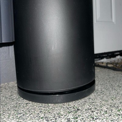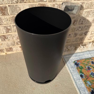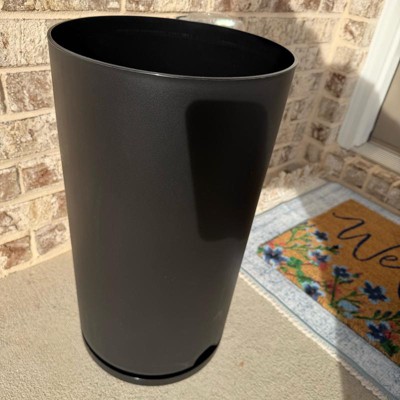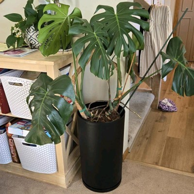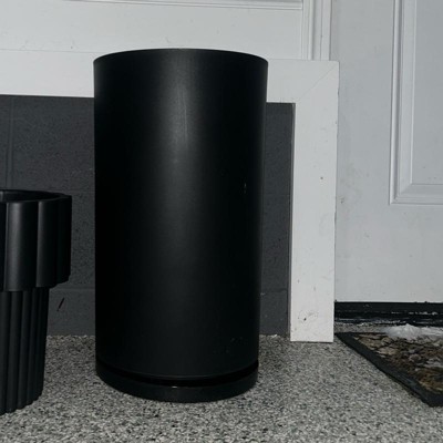 This black recycled Resin indoor outdoor planter is made with a nice quality resin material and seems pretty heavy duty. The bottom part seems to be a little crooked though and I’m hoping I can adjust it. It’s pretty big and measures 12x21 with a tall circular design and simple style. This is a nice sized pot for the prize. I’m satisfied with my purchase.