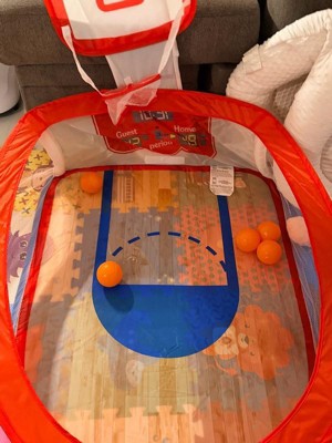 [This review was collected as part of a promotion.] It’s easy for pop up,my little boys love it so much,he play with it all the time,the only problem i feel like the basket no sturdy enough to keep it straight.