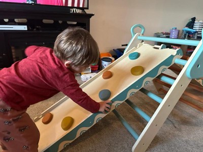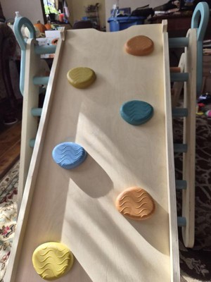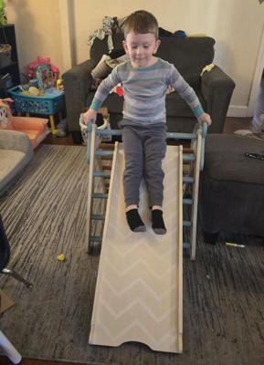 [This review was collected as part of a promotion.] My son loves this set! I was lucky enough to receive this product from Influenster to review. I have been looking to buy a similar product for awhile now. I this climbing set is so great for littles! Two slide options make it fun and great for multiple ages. It also has a ladder side and a rock climbing side. This is such a good product to help toddlers learn agility, motor skills, problem solving, and have fun. We are delighted with it, and are so grateful to have it for the upcoming winter months! It is very sturdy and relatively easy to assemble. It has a lock to collapse it for better storage which is a great feature. All in all we are very satisfied with this product and would recommend it!