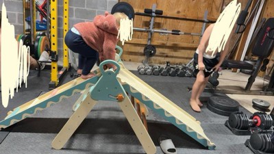 [This review was collected as part of a promotion.] My kids are absolutely loving this. I have a 20 month old and 6yo. We put it up in our home gym to keep them entertained while we’re out working out, so they can “work out” too. The soft flooring underneath makes us feel more comfortable. The climber itself is good quality and seems quite safe. Putting it together wasn’t the best experience, but looking back it wasn’t too bad. It was worth it because the kids love it. My daughter is always climbing on dangerous stuff so this is a great activity for her to do that I don’t have to worry about. She really enjoys it! I love that you can change the steepness so easily and it’s easy to fold up so after initial assembly it’s really good.