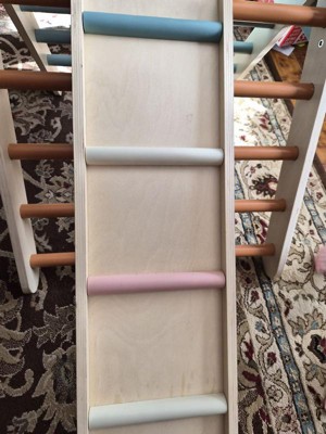 [This review was collected as part of a promotion.] This wooden triangle climber is really cool! My son is a 19 mo old and loves it! Perfect for learning coordination skills at this age. The grooves that each reversible part of the climber sits on the ladder well and doesn’t move around, so I feel that it’s pretty safe. Assembly took about 45 mins. Tools are provided (just allen wrenches) so it was pretty simple. Neutral colors that go with any decor around the house. Great gift for a toddler!