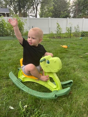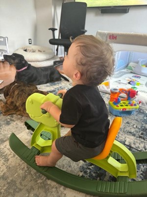 [This review was collected as part of a promotion.] A bright and safe rocking toy for children from 1 to 3 years old. Made of durable odorless green plastic. A good alternative to soft rocking toys with fur, because it does not collect dust, which is harmful to children, and sometimes can even be dangerous. It is very compact, so it does not take up much space, and due to its light weight, it can be easily carried from one room to another or into the yard. It is very easy to clean, so you should not worry at all about your child getting it dirty. I really like that the toy is stable and not very high off the ground. If the child falls from it, chances of injury are almost nonexistent. For me, as a mother, the child's safety comes first and this toy is giving me a peace of mind. My son is safe and happy when he is riding on it. Pros: • Stable • Bright color • Easy to assemble • Wide swing range • Safe product material • No sharp corners • Can hold up to 43 pounds • Fair price • Our son likes it • Helps to develop balance and better body awareness • Comfortable hand holders and foot rests I didn't find any cons