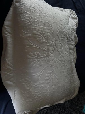 [This review was collected as part of a promotion.] This is such an elegant sham! It has a really pretty floral design that adds a sophisticated touch to my bed. The material is super soft and luxurious and feels very high quality. It fits perfectly on my standard size pillows. I also really love the zipper feature since I hate it when my pillows fall out of their cases. So far, it's held up really well, and as mentioned previously, it feels high-quality, so I think it's going to be quite durable.