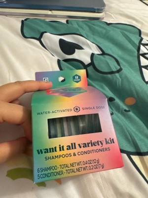 [This review was collected as part of a promotion.] This kit honestly impressed me. The water activated concept is super cool and eco friendly. The shampoo lathers and cleans well without drying my scalp and the conditioner feels really moisturizing. I also love that they’re small and easy to take with you on overnight trips without taking up too much space!