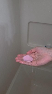 [This review was collected as part of a promotion.] This is great for if you're traveling or camping. I wouldn't recommend this for everyday use, but it was interesting to see it turn into a lotion type substance. I wouldn't put it in direct shower spray, but submerging it would be best.