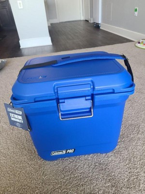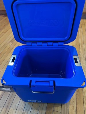 You work hard for your time off. You deserve gear that goes above and beyond. Meet the Coleman Pro series, designed for those who expect more. This 55-quart hard cooler stays cold for up to 4 days thanks to a fully insulated lid and body featuring extra thick walls up to 2 inches wide. Use its rugged wheels and extendable handle to comfortably roll from backyard to beach to tailgate to sidelines, while the stainless steel latch allows you to open and close the cooler with one hand. The antimicrobial liner helps prevent odor, mildew, and mold.* Extra-wide drain plug is attached so you can drain fast without losing track of the plug. Tie-down straps and non-slip feet let you securely rig your cooler in the bed of your truck or in the D-rings of your raft, while a pad-lock opening lets you add extra security. The Have-A-Seat lid is built to accommodate an extra guest when you run out of seats around the campfire, at the game, or out back. Best of all, these built-to-last features are backed by our 10-year limited warranty, so you can confidently bank on Pro performance for all your trips to come.