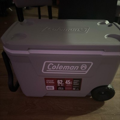 Inspired by our Wichita roots and the people who work there, the Coleman 316 Series™ of hard coolers brings uncompromising quality and a legacy of craftsmanship and adventure wherever you take them. The 316 Series 62-Quart Wheeled Cooler has all the features you'll need for the outdoors from tailgating with friends to annual camping trips. The fully insulated lid and body Keeps the Ice™ for up to 5 days in temperatures as high as 90°F so you can enjoy cold drinks at the campsite after hiking the trails or cooking hearty meals. Going to the beach? The heavy-duty 6-inch wheels and durable tow & swing-up handles help you haul a full load while staking out the perfect spot. Drinks are always within reach and don't spill because of the cup holders molded to the lid. If more guests swing by the tailgate or picnic, you've got an extra seat with the Have-A-Seat™ lid that supports up to 250 lbs. The large capacity fits up to 101 cans so you'll have plenty of drinks for everyone so gather around and swap stories of your latest outdoor adventures.