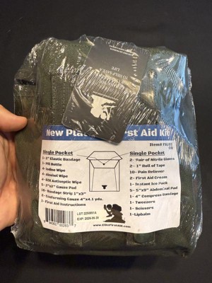 [This review was collected as part of a promotion.] This Platoon First Aid Kit is of very nice quality. The pouch is made from sturdy nylon similar to a modular lightweight load carrying equipment (MOLLE) configuration. There are sturdy snap straps on the back for easy carry. The first aid products inside this kit are hermetically sealed and sterilized for immediate emergency wound care. The kit has plenty of bandages, gauze pads, a pair of tweezers, scissors, a tube of lip balm, first aid cream, and even an instant ice pack. This kit is perfect to bring on any excursion because it is lightweight and has everything I might need for wound care, including nitrile gloves. I definitely feel much more confident and prepared with this high quality first aid kit on my person.