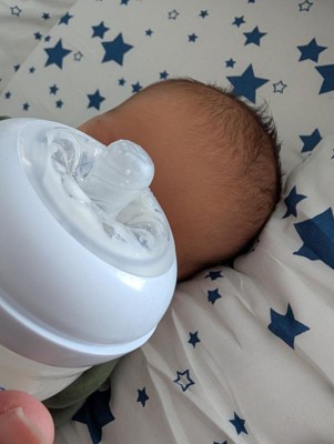 [This review was collected as part of a promotion.] Our son is almost two weeks old, and we used these bottles for a few days early on. Our original plan was to strictly breastfeed and introduce pumped bottles later, but while waiting for my milk to come in we supplemented with formula for a short period of time. Because of that, we ended up using these bottles earlier than expected and will likely use them again once I begin pumping more regularly. My baby accepted this bottle very easily during feeds. The flow felt very gentle, which is something we appreciated for such a young newborn. The small 2oz size and very low flow nipple seemed appropriate for this stage, and he appeared comfortable drinking from it without choking or gulping. Once we learned that the small vent should be pointed upward during feeds, everything worked smoothly. As new parents, we also appreciated the simple design. There are only a few parts, which made the bottles easy to clean and reassemble. I hand washed them to make sure I removed all milk residue, and the wide opening made that pretty straightforward. The only small frustration for me was the pear-shaped design of the bottle. It was sometimes difficult to get the last bit of milk out without tipping the bottle almost straight up and down, which didn’t always create the best feeding angle for my baby or could press the bottle a bit close to his nose. Overall, this is a great bottle option for the very early newborn stage because of the slow flow and small size. I think these would be especially helpful for parents who are formula feeding from the beginning or introducing bottles very early. I received this product as part of the Stellar Product Testing Panel.