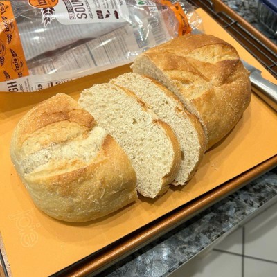 This take and bake sourdough bread is delicious! I purchased to bring to Christmas dinner not to pass as my own but I could have. It was a hit. It’s very convenient and doesn’t lack taste. I love the simple clean ingredients. It has a crisp outside with a soft center. Great by itself, for a sandwich or dipping in soup.