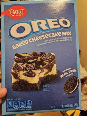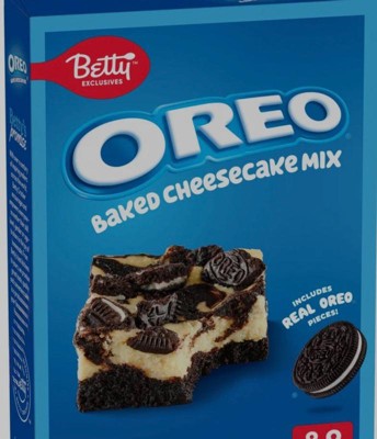 • CONTAINS: One 8.9 oz box of Betty Exclusives OREO Baked Cheesecake Mix; Makes 15 servings
