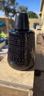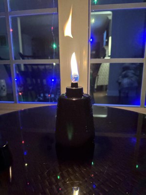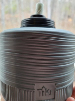 [This review was collected as part of a promotion.] I received this table torch for free to review. I initially picked it because it looked like a beautiful blue on my screen. However, when it arrived it's more of a grey color. Although, it's a big bottle that will hold lots of torch fuel and won't need to be refilled that often. It also features a nice, sturdy wick to light. I think it's wonderful way to prevent bugs from coming around. I just wish that it was bluer.