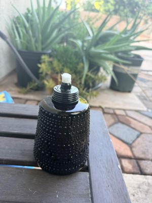 [This review was collected as part of a promotion.] This is an outside tabletop wiki torch that keeps mosquitoes and other bugs away. Just fill it with wiki torch fuel and it's ready to use. To put it out, you can just place the cap on it and it puts the flame out or you can just blow it out. It's slow burning so, the torch fuel last a very long time. It's decorative and goes well with other wiki tabletop torches. It's small enough for just about any outside table. It's made of glass, so you have to keep that in mind when placing it. This is the perfect addition to my tabletop wiki torch collection.