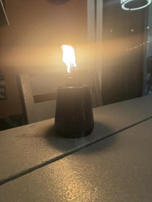 [This review was collected as part of a promotion.] Great little torch. We've tried similar products - the concrete torches that burn alcohol, and found those to burn to hot and fast. This little guy is great for the table, and depending on the fuel it can be used inside or out. We had some of the TIKI Clean Burn Mosquito Repellent Torch Fuel left over from the summer, and that burned nice and clean. Despite the small size, it was easy to fill and set-up. It has some weight to it, so there’s no problem with it blowing over. When we tried it outside, the flame stayed strong, despite the wind. I love the fact that we can put this on the table where we can enjoy the atmosphere, and in the season have the bug replant right there instead on a post away from the group. Plan for this to be a staple for our evenings at the camper starting this spring.