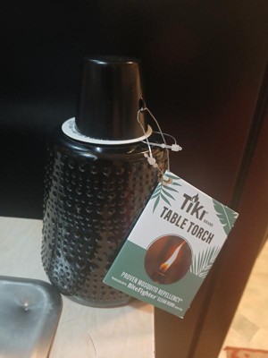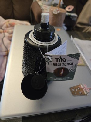 [This review was collected as part of a promotion.] This is a very nice table top torch! It works well with the tiki fluid. It comes with a top so the torch can be put out easily. The design is very nice to look at and it blends in nicely with decor so it doesn't look out of place in the midde of an outdoor table.